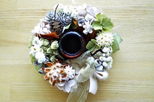 こちらはテーブルに置くタイプのキャンドルホルダーリース。
