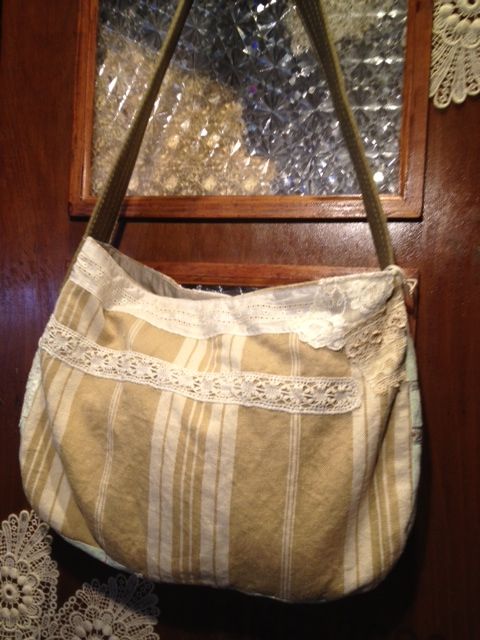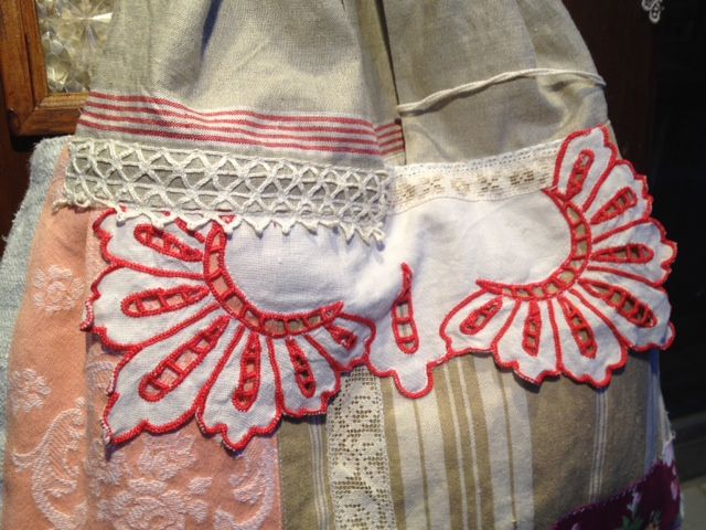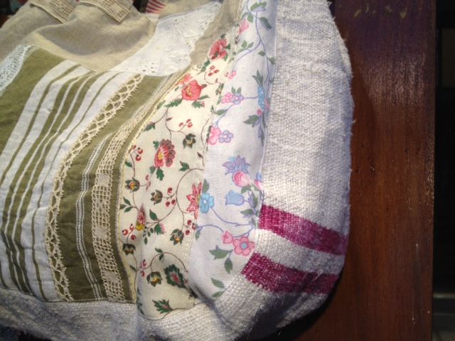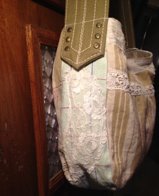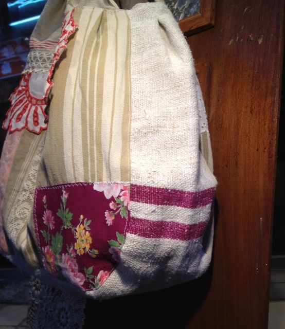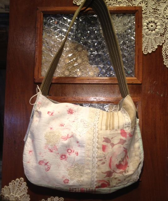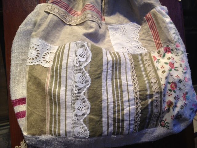アンティークレースとアンティークファブリックのたっぷりパッチバッグ