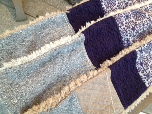 ベージュスノー柄にツィードニット、アラン風ニット、グレーのキルトニットをパッチ♪