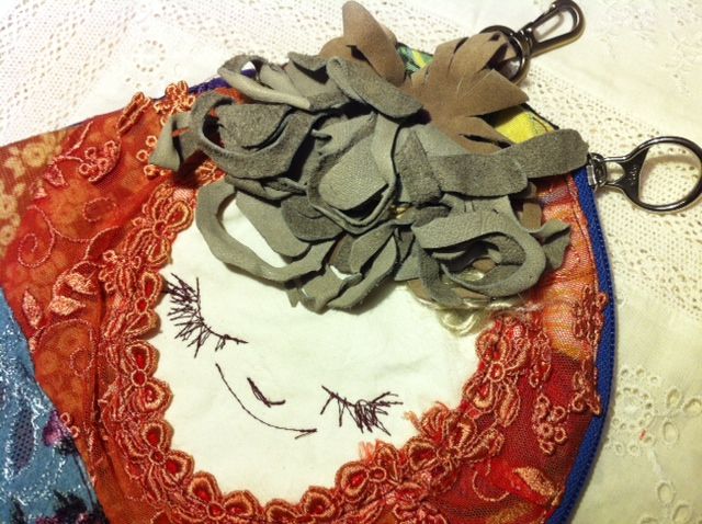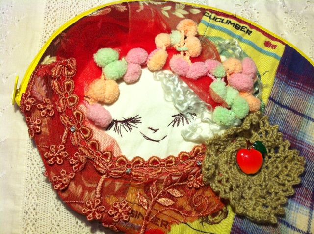スヤスヤにっこりのお顔はフリーハンドでのミシン刺繍。