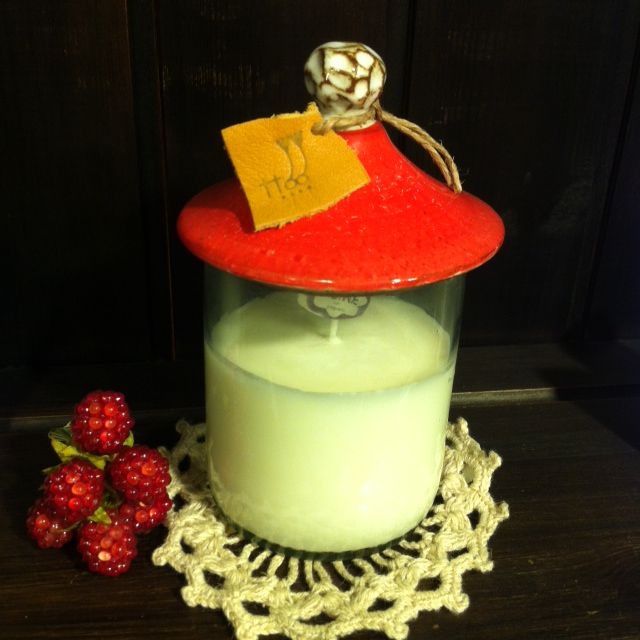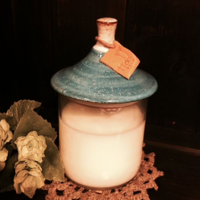 した手作り陶器の蓋つきのソイキャンドル