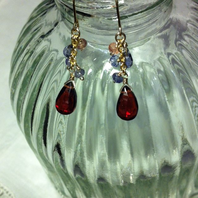 ガーネットとアイオライト、タンザナイト、ピンクトルマリンのピアス