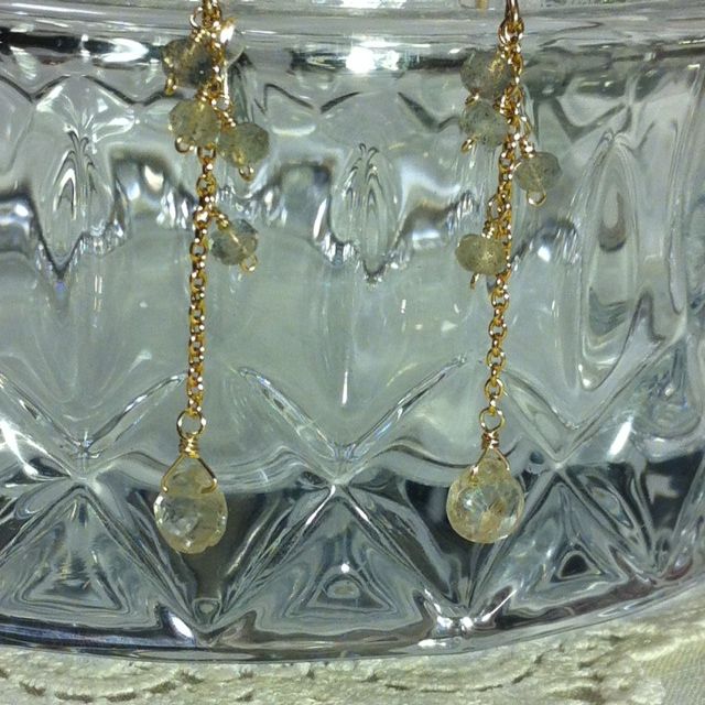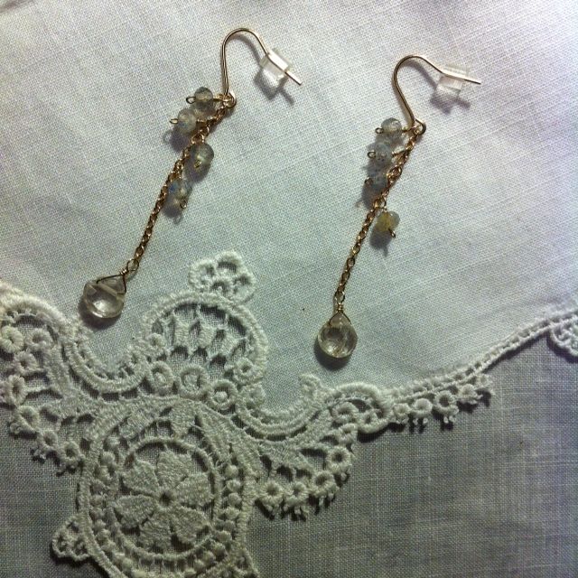 ラブラドライトと天然ジルコニアのとても軽やかな雰囲気のピアスです♪