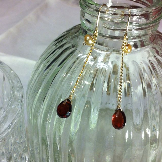 14kgfガーネットと淡水パールのピアス