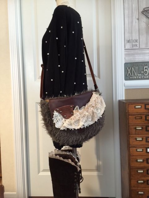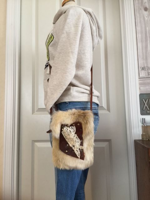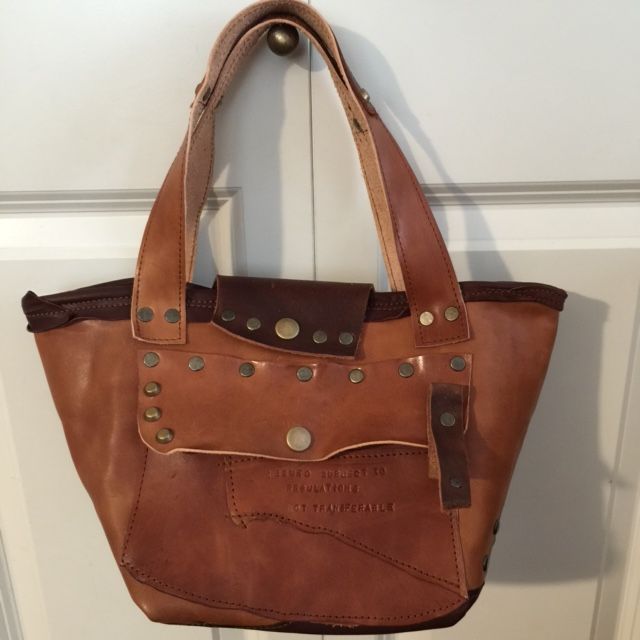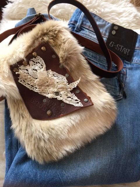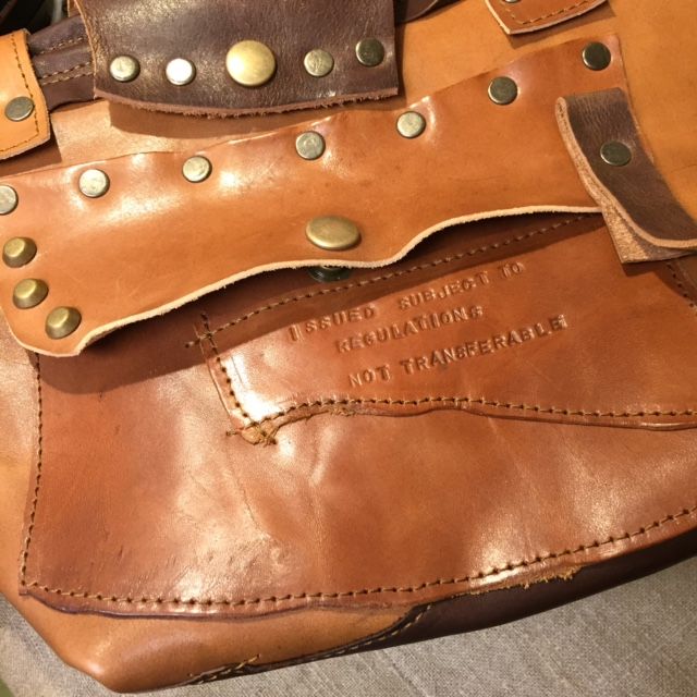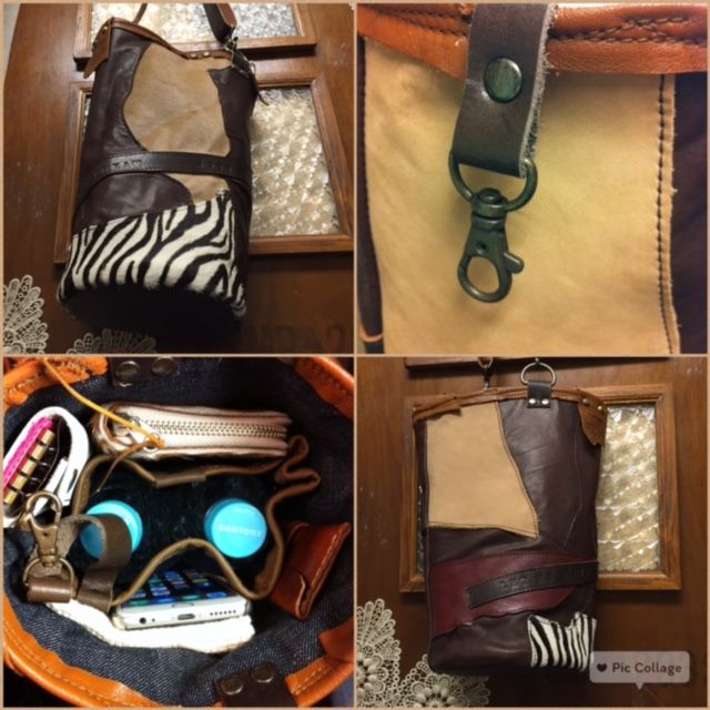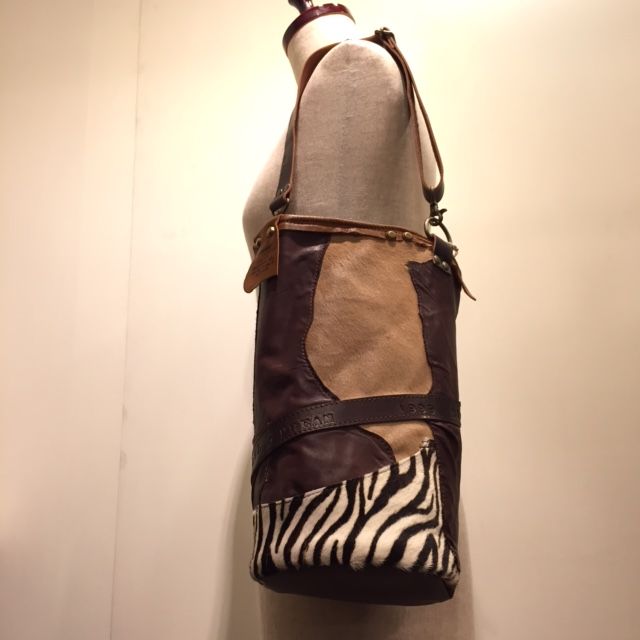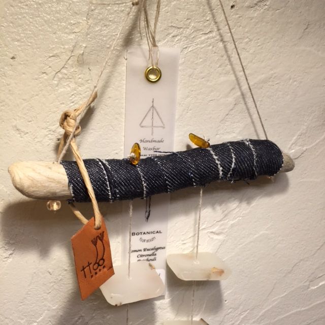 流木に裂いたデニムを巻きつけて、タストオさんの焼印入りの革タグも♪
