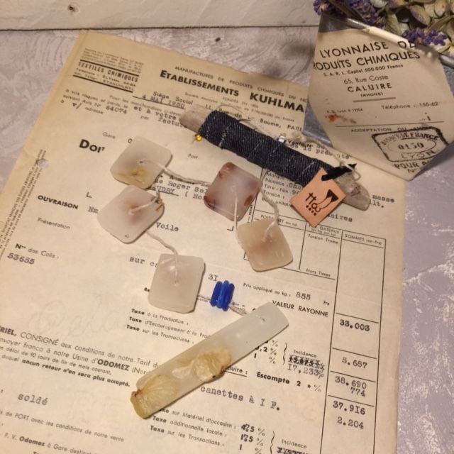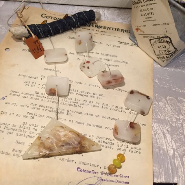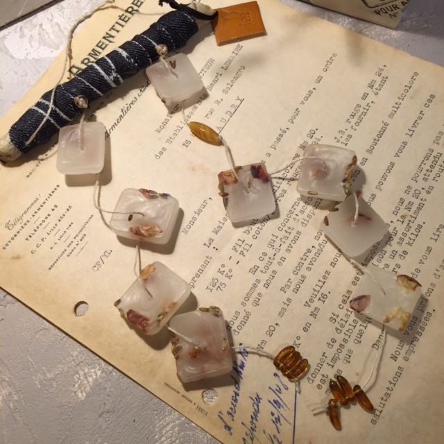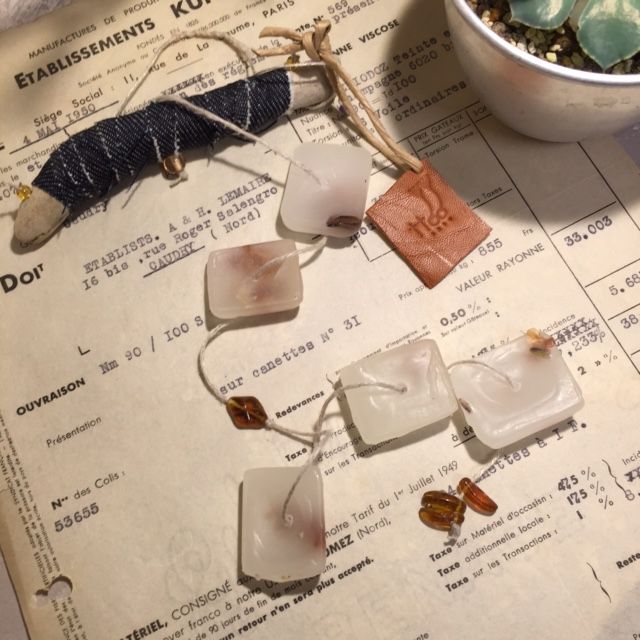 ワックスのかけらが8~9個つないであり、間にはチェコのガラスビーズを☆