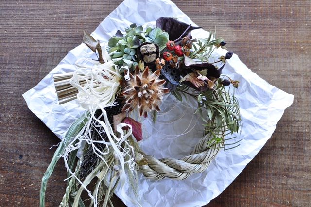 しめ縄にナチュラルな素材をゴージャスにアレンジ☆