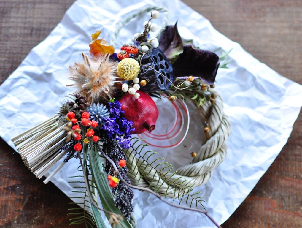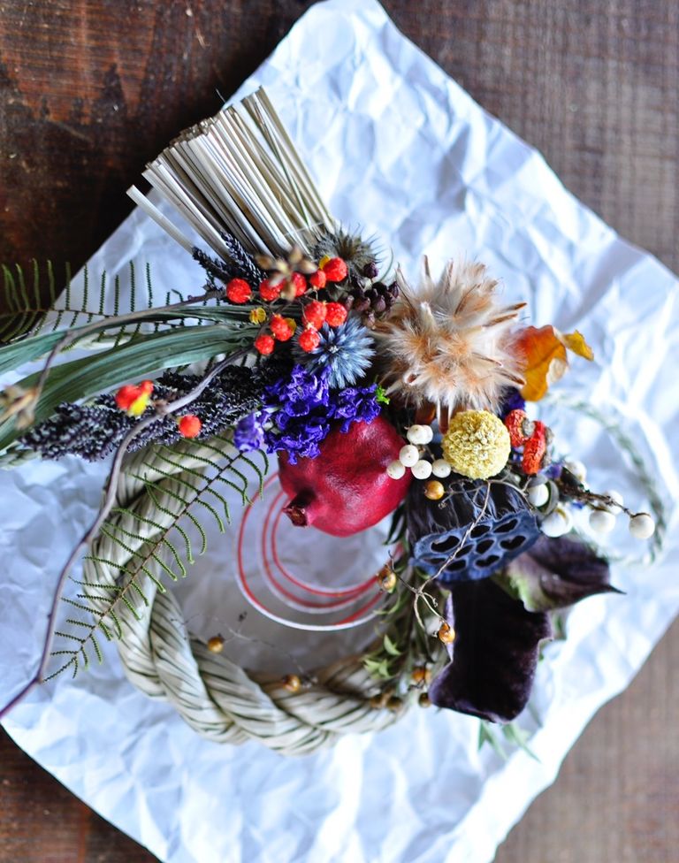 ドライフラワーアレンジのしめ縄お正月飾り(ザクロ)