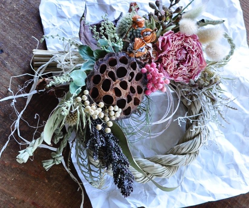ドライフラワーアレンジのしめ縄お正月飾り(シャクヤク)sold out
