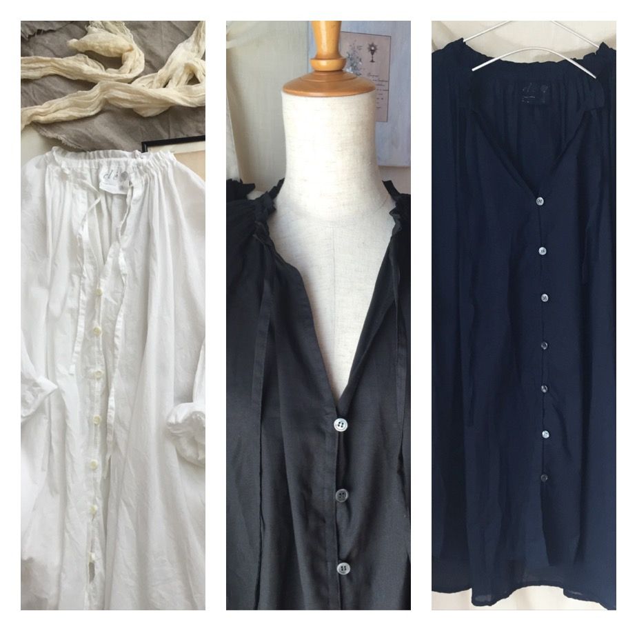 ドルマンスリーブシャツ ホワイト・ネイビー・ブラック (コットンローン各7900円)