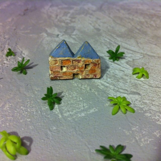 幅2.5センチのこの小さなレンガのおうち、ブローチなんですよ-♪