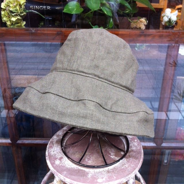 ハーフリネンのつば広ハットです。