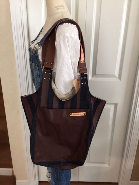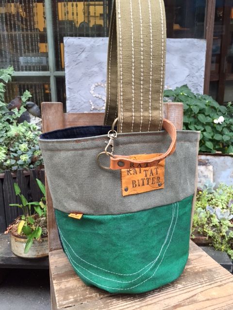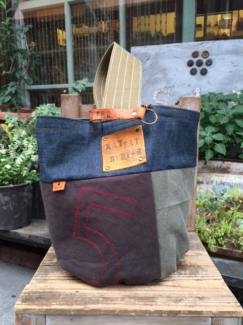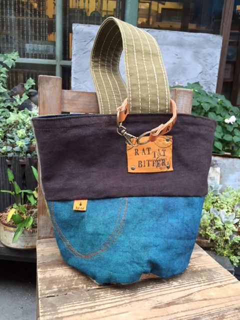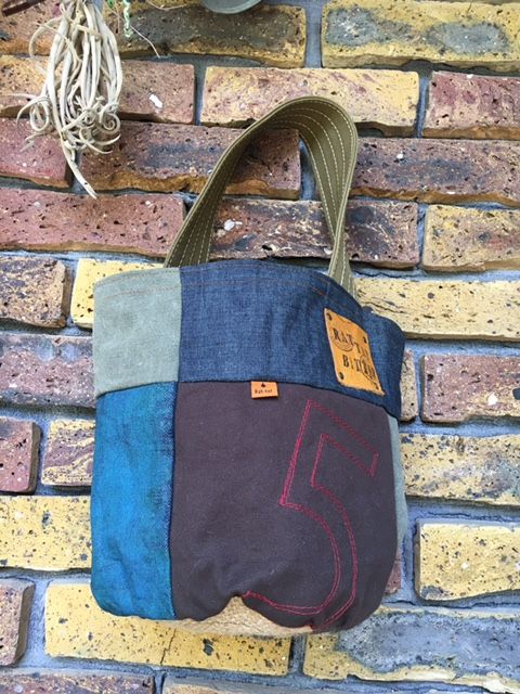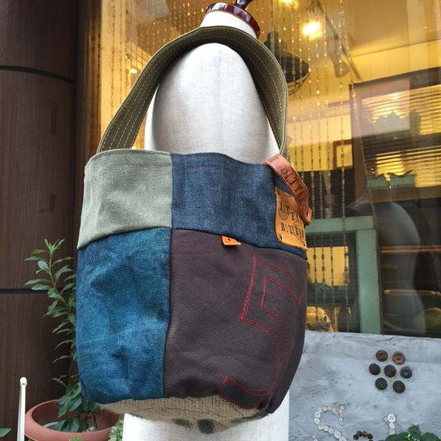 デニムと帆布パッチのバケツトート(A)