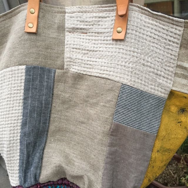 リネンとペインティングデニムのパッチワークビッグトート