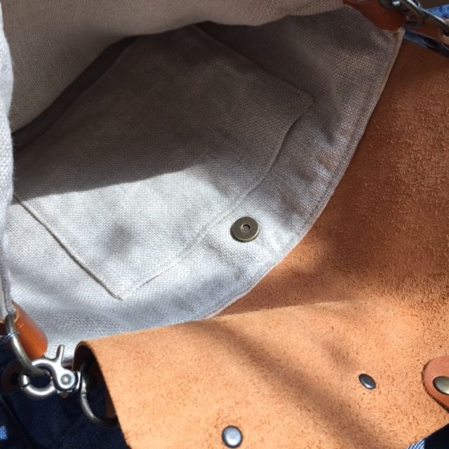 内側はデニムでポケットつき