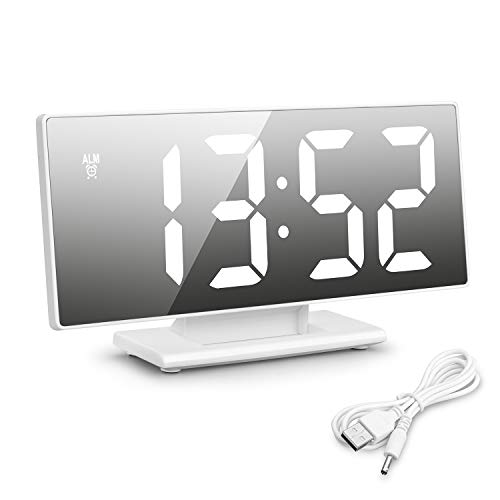 大きな文字のデジタル時計視力が悪い人向けに大きめ文字の時計。 トレ中メガネを外しているのでトレ室用に。 ROFAY LEDミラー目覚まし時計、大画面ディスプレイLEDデジタル目覚まし時計、温度スヌーズおよびパワーオフメモリ、USB充電器駆動 (ホワイト) Amazon(アマゾン) 1,899円