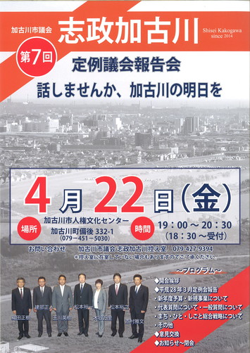 第7回 定例議会報告会の御案内をさせていただきます。