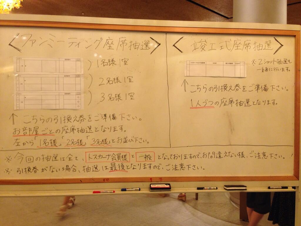 抽選終了!左がファンミ、右が竣工式の席。