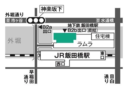 飯田橋西口仮駅舎を出たら市ヶ谷方面に進み、交番を右折。