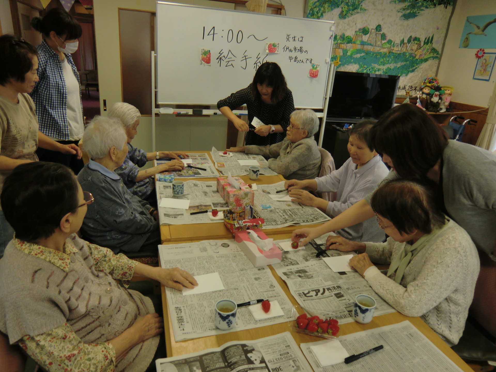今月のボランティア絵手紙教室で利用者さんと一緒に作りたいと思い
