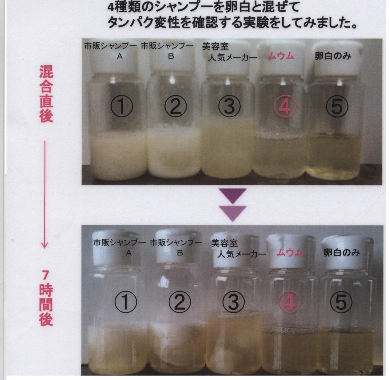 ④ムウムシャンプーは7時間経っても卵白とほぼ同じ状態ですね。