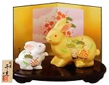 - 干支の置物 2011年 開運金銀福うさぎ親子 01490/陶器屋