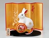 - 干支の置物 2010年 錦彩招福うさぎ 開運福槌 小 0870/陶器屋