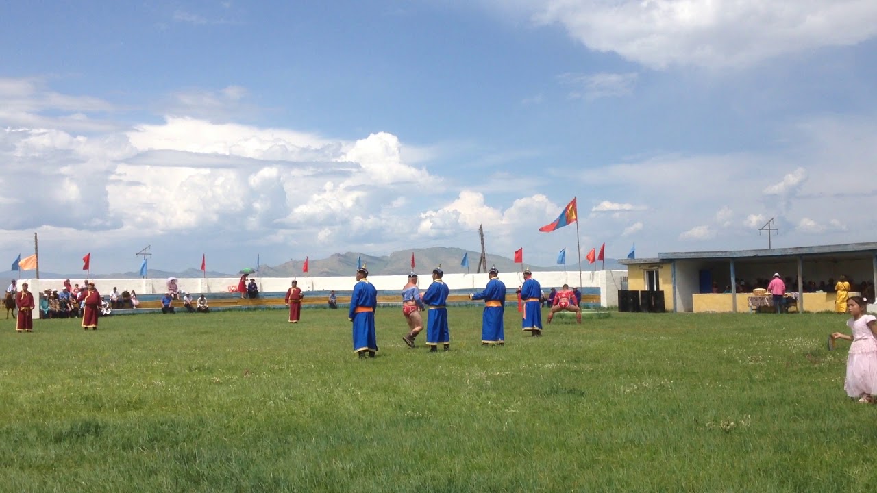 ウランバートルから400キロほど離れた小さな田舎のナーダム会場にこのような外国の観光客がいることに驚いた。