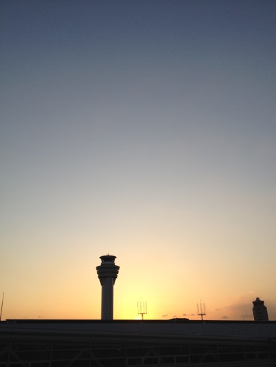 夕暮れの羽田空港管制塔