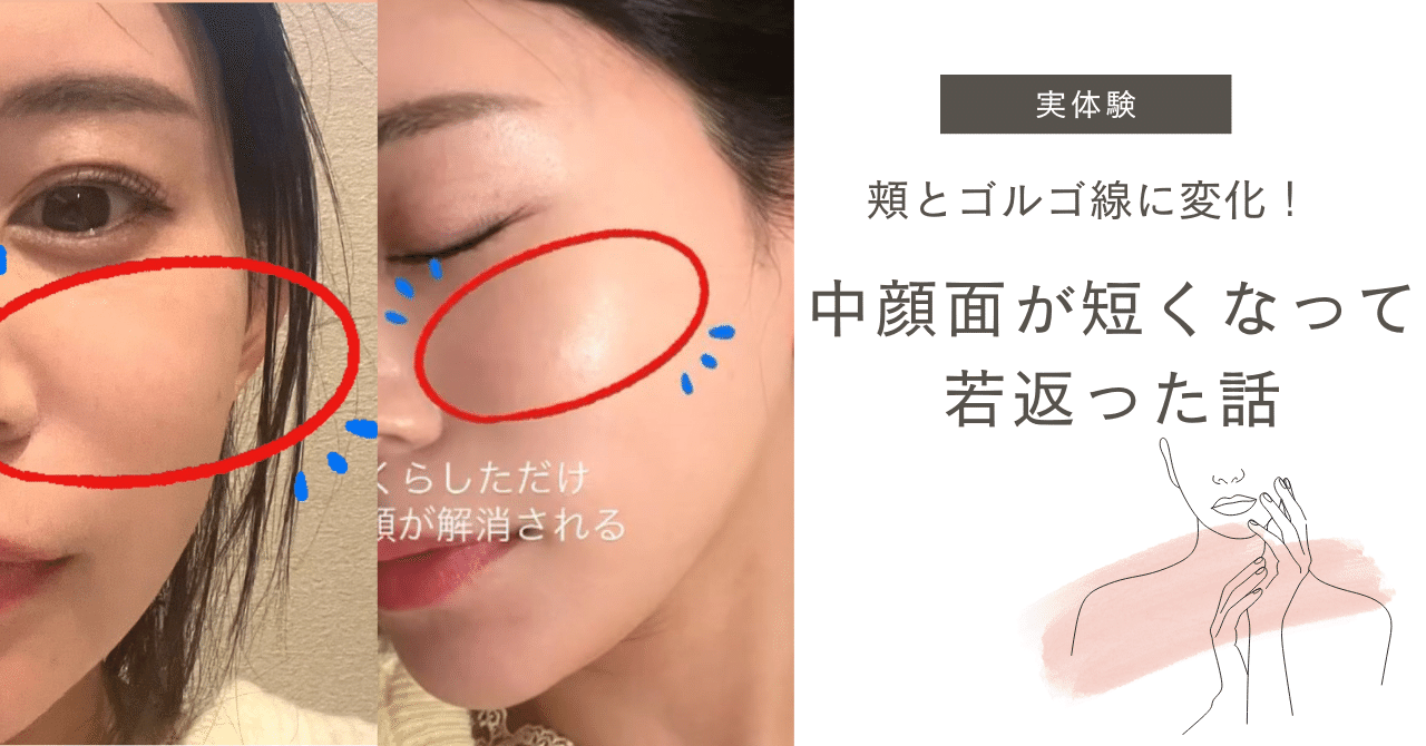 中顔面とは、目の下から口元までのエリアのこと。この部分が加齢とともに縦に長くなってくるんです。それが顔の老け印象を作り出す大きな要因だったんですね!