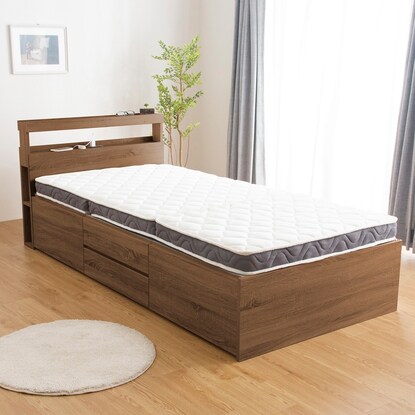 下の写真のとおり、引き出しだけでなく、左側のベッドのフタを開けると、