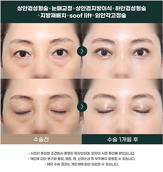 下眼瞼手術+脂肪再配置+Soffリフト+外眼角固定術(術後1か月)