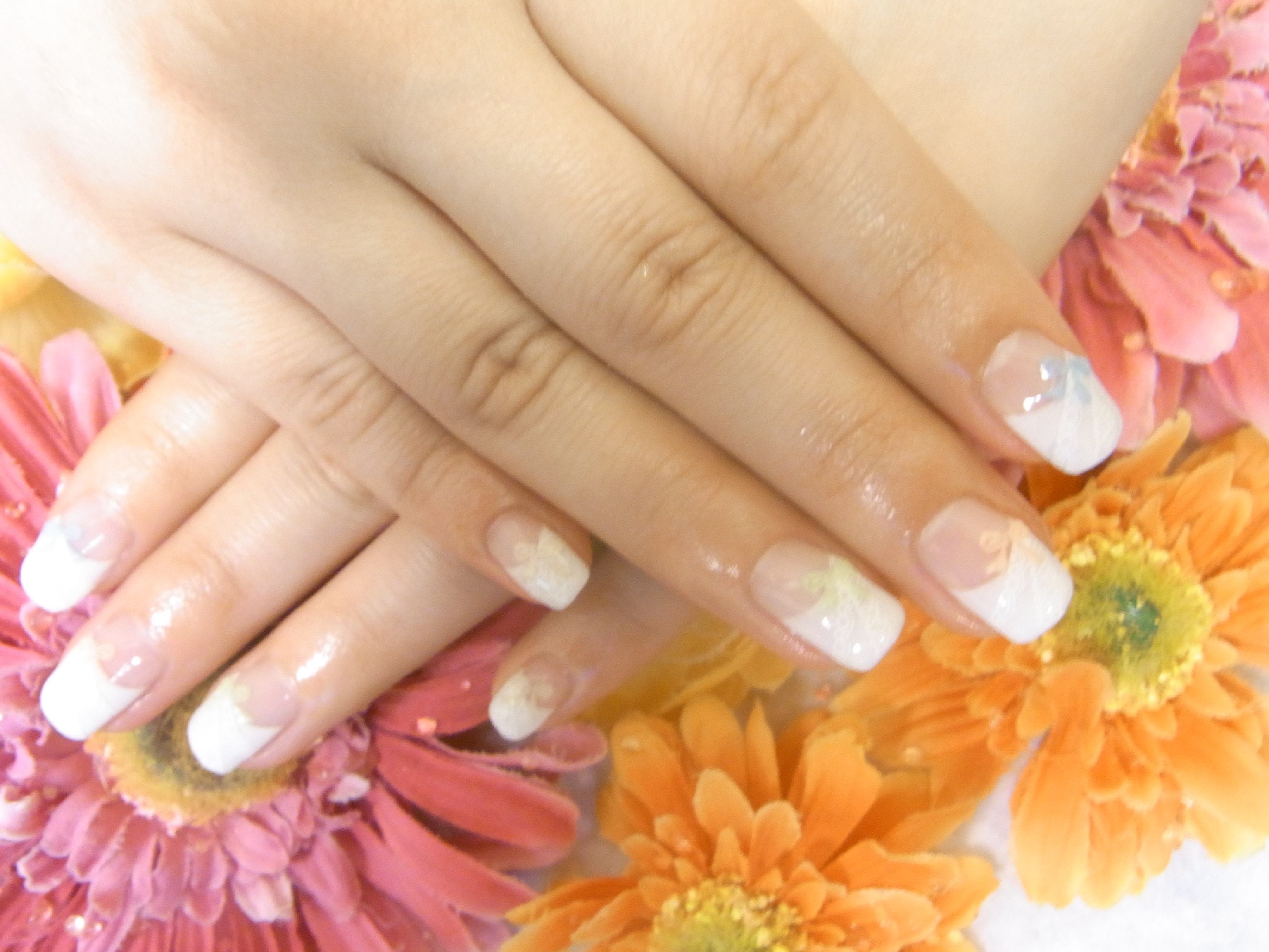 I様 白Wフレンチ&ラメラインに刺繍リボン ジェルネイル!I様いつも有難うございますI様もパステル5色で刺繍リボンアートです春らしくて可愛いので皆さんにもおススメです当店にしかない刺繍リボンです研修旅行で買い付けに行きましたバイオジェルネイルのお問い合わせはAromanail SCeNailsまで。