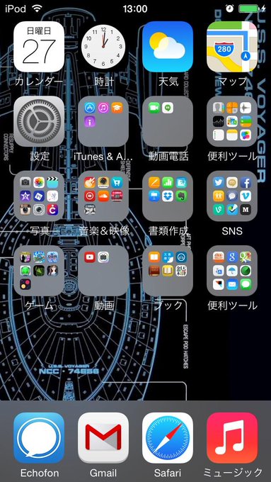 現在のiPod touchの壁紙。ロック画面は #startrek の惑星連邦のエンブレム。 pic.twitter.com/HVJsNFRF8P