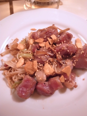 他、日によってメニューが変わると思いますが、クリームチーズアンチョビ(250円)、メンチカツコロッケ盛合せ(300円)、鶏モモ塩焼き(480円)、牛ロースステーキ(480円)、豚バラ白菜鍋(650円)など。前に食べたマトンのハンバーグもとても美味しかった。