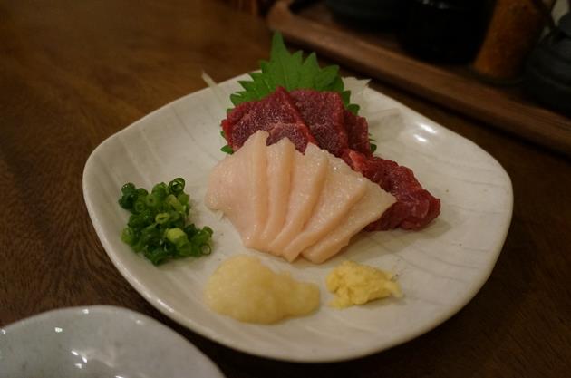 さて、おつまみは馬刺しとホルモンなんてどうでしょう。