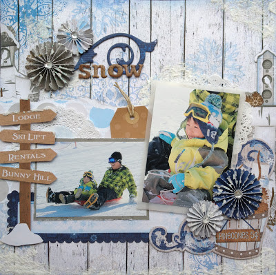 台紙やロセッタに、雪のテクスチャーをつけました。