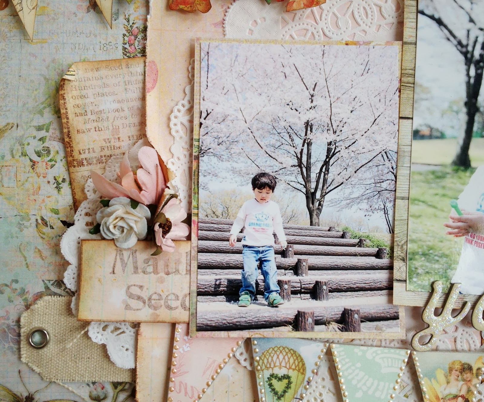 キット 続けて2つ目の記事です♪ 桜の写真にと買ったprimaのペーパー。 似たような淡い色ばかり買っていました。 普段、白ぽいペーパーと柄の入ったペーパーを組み合わせて買うことが多いので どうしよう・・・と悩みましたが 同じような色味でもペーパーの淵をインキングして組み合わせると厚みと奥行きが出来ました。 バーナーや写真など所々ポップアップして貼っています♪ こちらもクロパのキットになる予定です。 キットショップにも出品します!!
