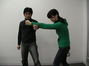 護身エクササイズでは大きな力を発揮できる姿勢(立ち方)=姿勢力を教えています。