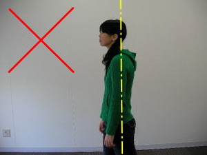 耳と肩のラインが揃ってない状態というのは猫背になっている状態ですので注意しましょう(写真参照)。