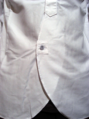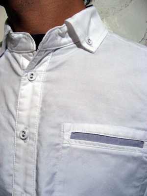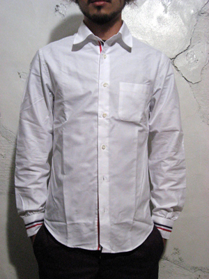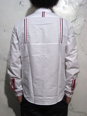 シャツのラインにトリコロールのラベルが貼ってあるシャツです