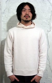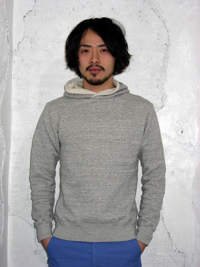 小さめのフード付きスウェットになっていて色は杢グレーとオフホワイトの2色です