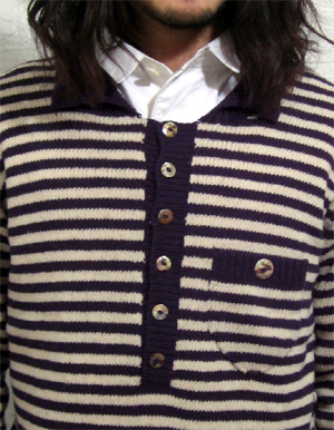 黒とボーダー柄があるポロニットです