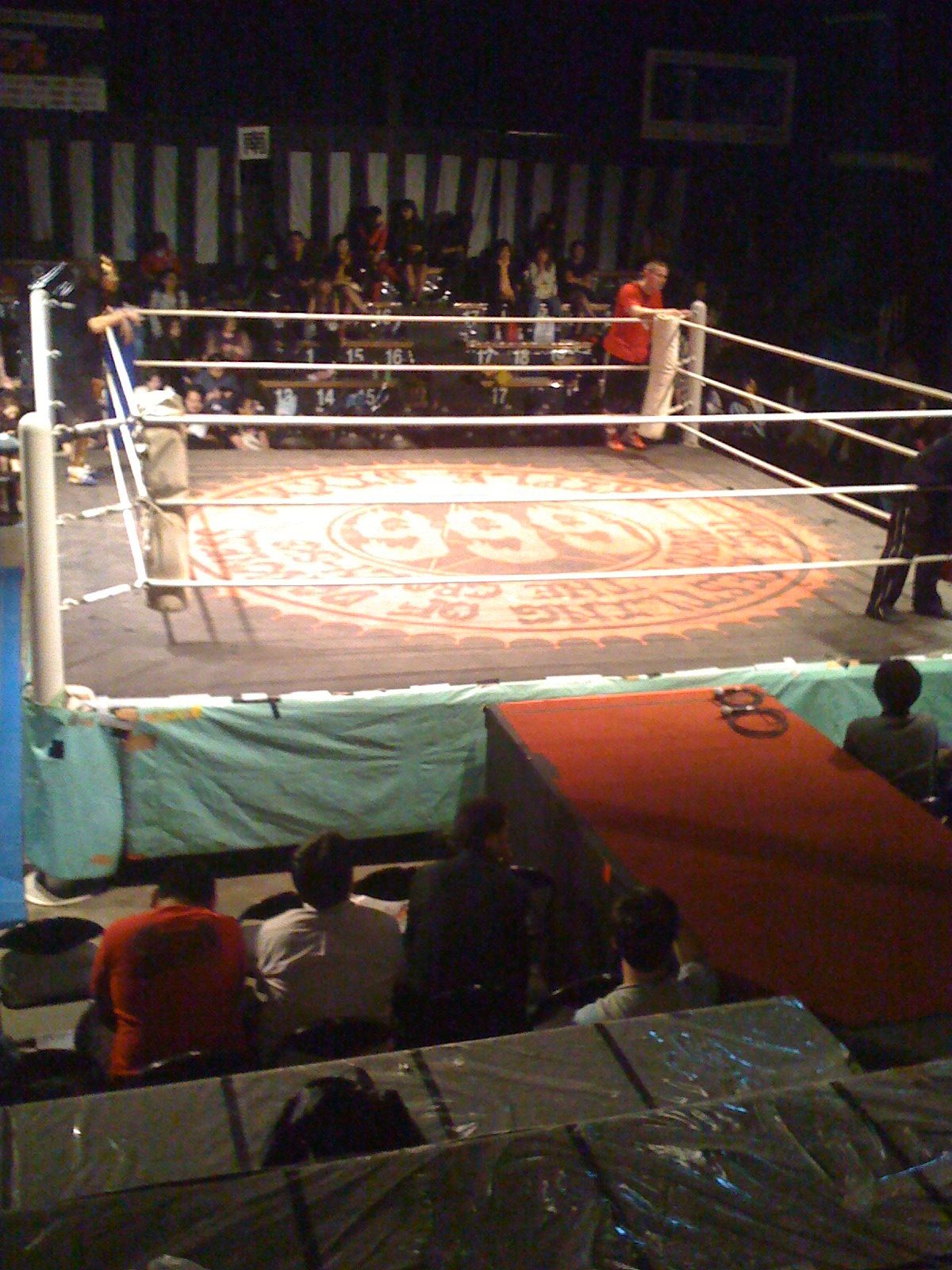 客席全体がビニールで覆われてるのが気になる。あぁドキドキするなぁー。バカ社長が復帰するんだから、すんごいことになるんだろうなぁ