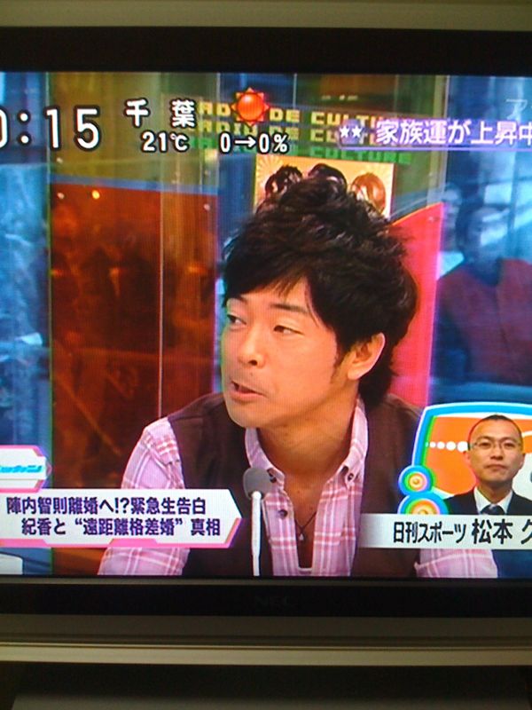 朝飯を食べるときにたまたまテレビをつけたら、藤原紀香と陣内が離婚へとい