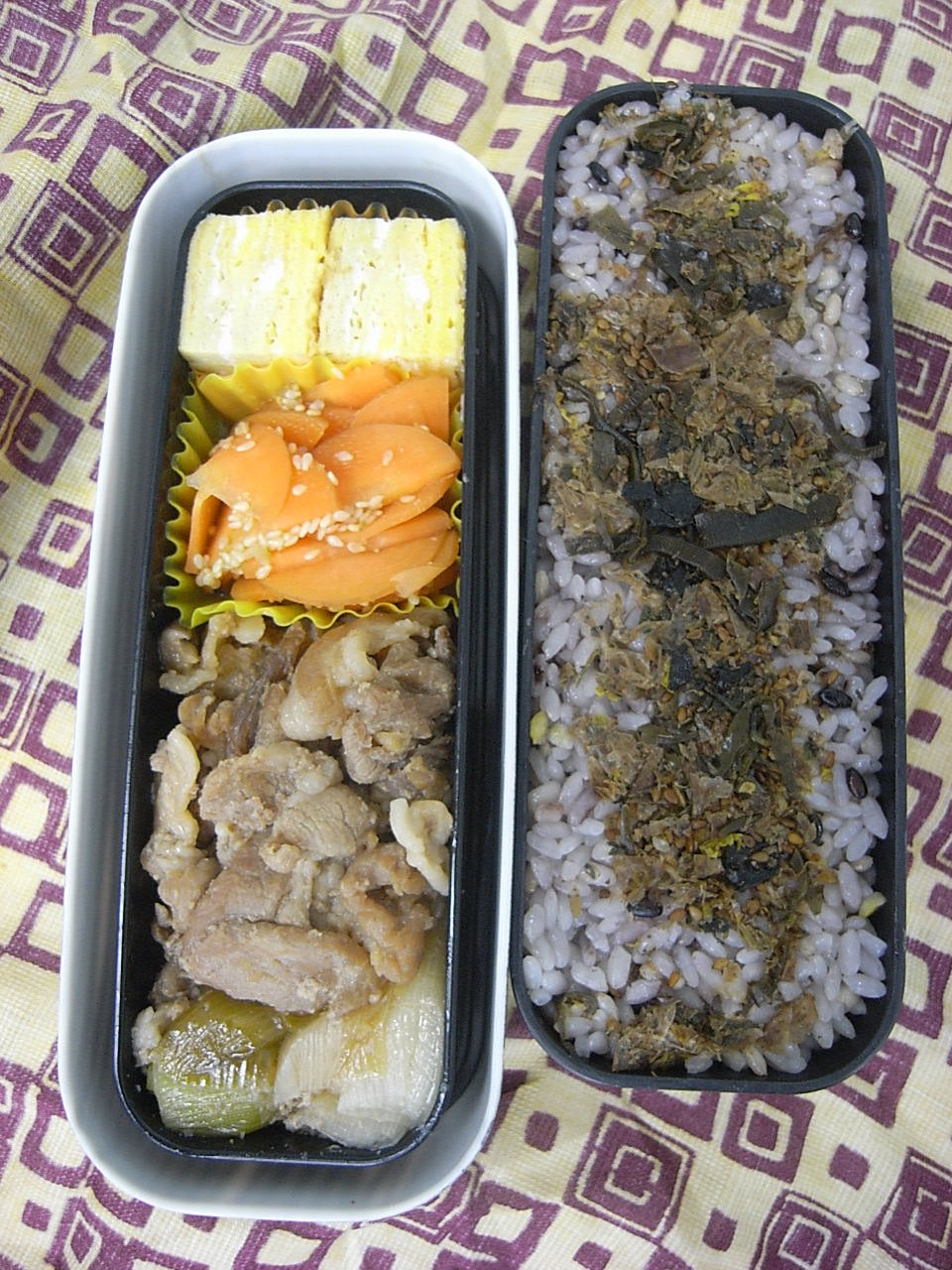 今日のサーモンはいつもよりちょっと大きいように感じました。味噌といっても、全然しつこい味付ではなく、とってもさわやか。ただ・・・大根おろしをもうちょっとだけ・・・ほしい。それと、お醤油さし。醤油がたれます。昨年、小鉢類のクオリティが若干下がったのでは、と危惧しましたが、今年になって戻ってきているみたい。ブログを読まれた、というよりも、きっと年末で急がしかったんでしょうね~。今日うれしかったのは、お味噌汁の具が大好きなふのりだったこと。それと、おしんこですが、いつもは白菜だけなのに、今日は2切れのべったら漬けもあったこと。好きなんです~~~。べったら漬けだけでも、結構ご飯いけちゃうよね!お米もおいしいし、くろもんさん。で、小さなおかずは今日はおからだったと思いますが、これがなんだかおいしかった~。これでご飯1杯いけるかも。