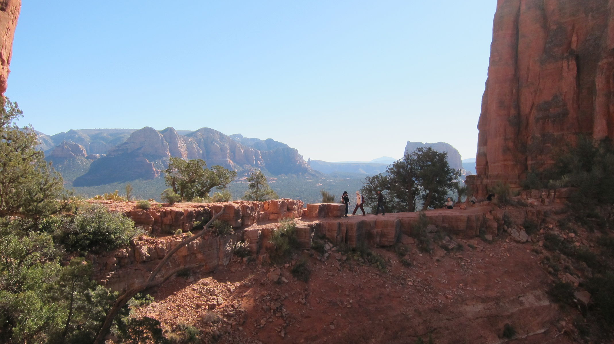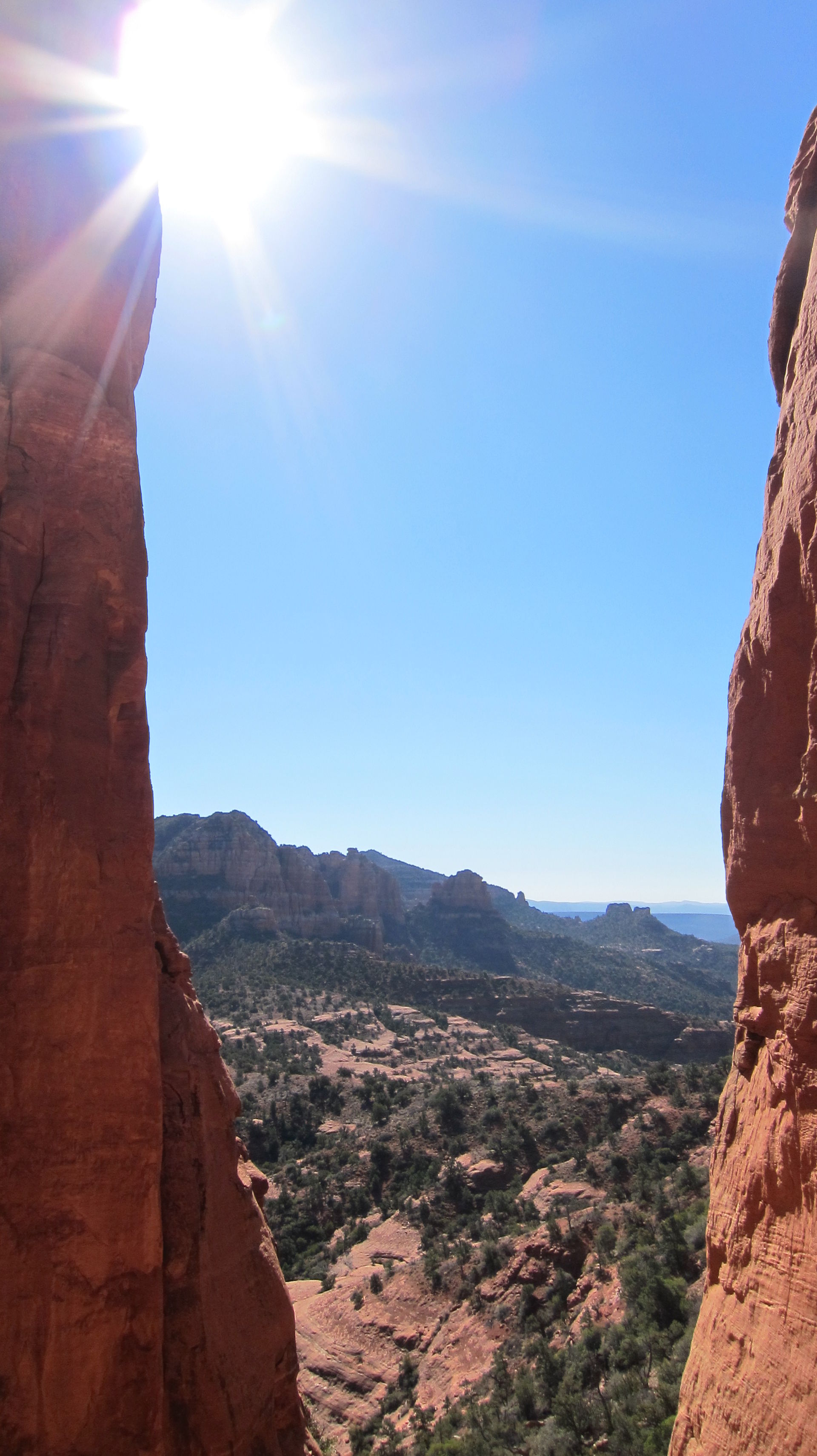 ここは本当にワタシも大好きなおすすめの場所です。セドナに行ったらぜひぜひ行ってほしい場所です。下から見えた岩の間から見る景色・・・ここは、「風が通る場所」と言われています。すごく静かで、風の音しかしません。あとは鳥の声くらいかな・・・。なぜか、人も静かになります。瞑想というわけでもないけど、静かにじっとしてしまう感じかな~