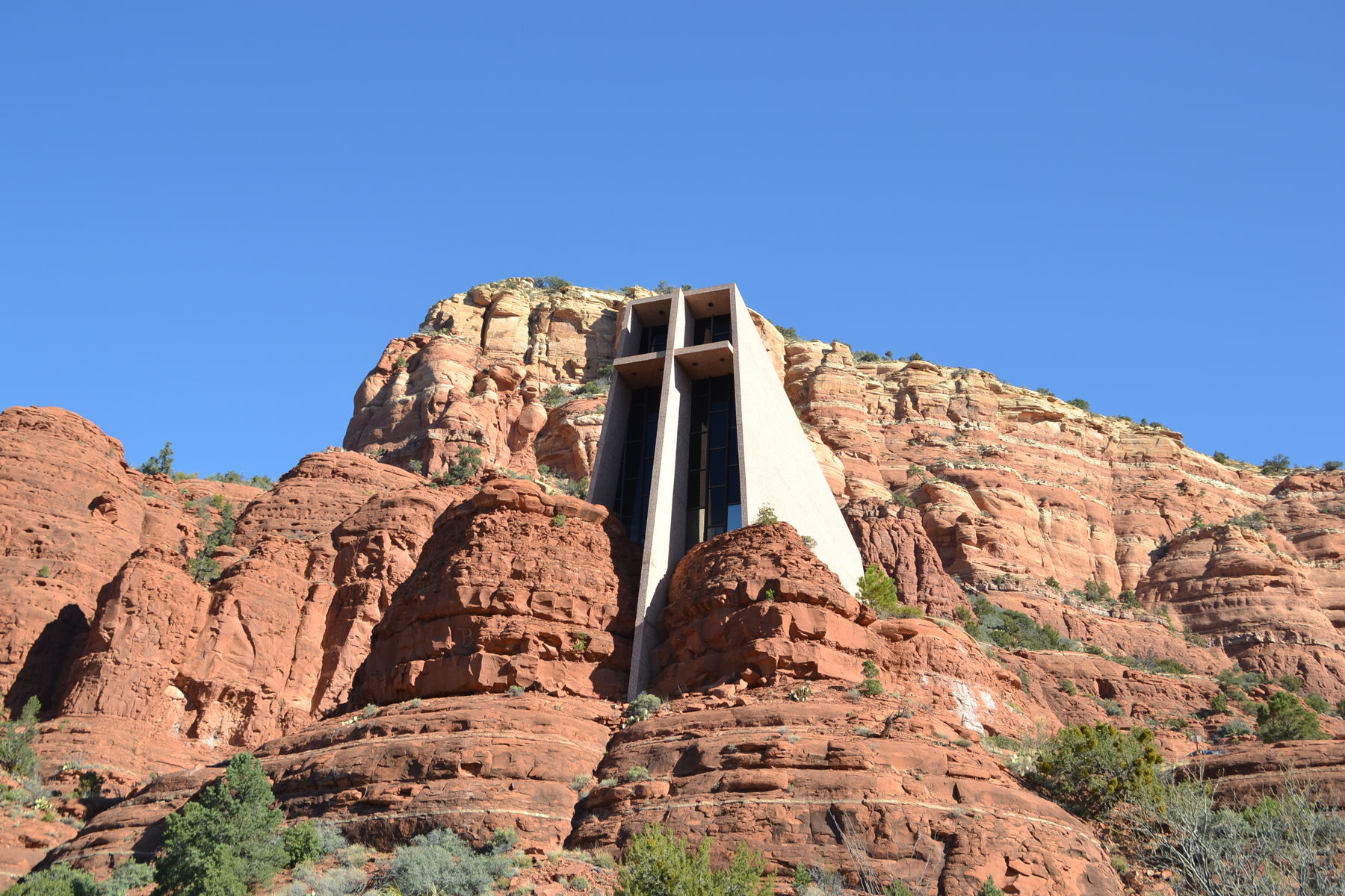 50年前に作られたとは思えない、美しい建築。このチャペル、女性にすごい人気で、皆さんもっといた~~い!と言うんですよね。この教会の近くには、キリストを抱いたマリア様のように見える岩もあったりします。礼拝堂は、十字架は窓になっていて、向こうにレッドロックが見えます。素晴らしい景色。地下にショップがあるんだけど、ここから出て来れない方が多数現れます。桂子さんたちもそうでしたね~。おじさまとワタシは先に出て外で待っていました。すっごく気持ちよかったな。そうしたら、一人で行動していたDさんが現れました。みんな、同じ所に集まっちゃうのね~。