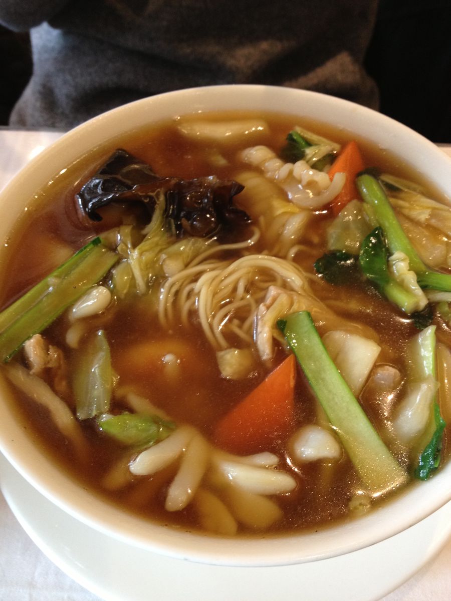 お正月なんで、よしとしましょう。あわてて食べようと勇み足でモジコがとりわけそうになったので、麺がもこっとしております。お肉も海鮮(いか、えび)もやわらかく、野菜はしゃきっとしててスープはほんのちょっととろみがかり、いいかんじです。麺はストレートの中華麺でなかなかのびません。酢を途中から投入すると美味。