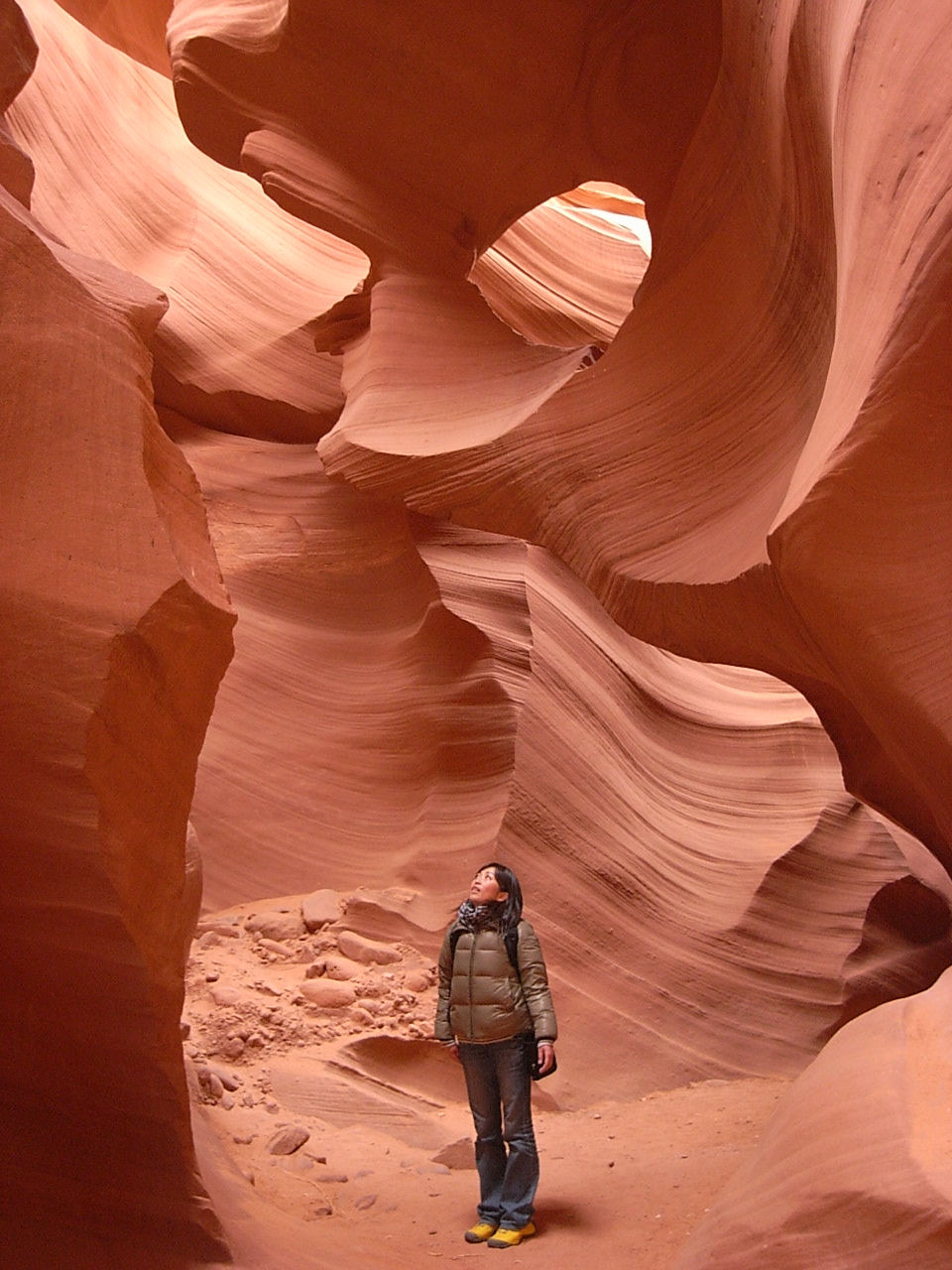 特に、アンテロープキャニオンに冬行ったときは、本当に貸切のような状態。夏は光がとっても美しいけど、人がたくさんいます。想像できないくらいにしーーんとした世界。